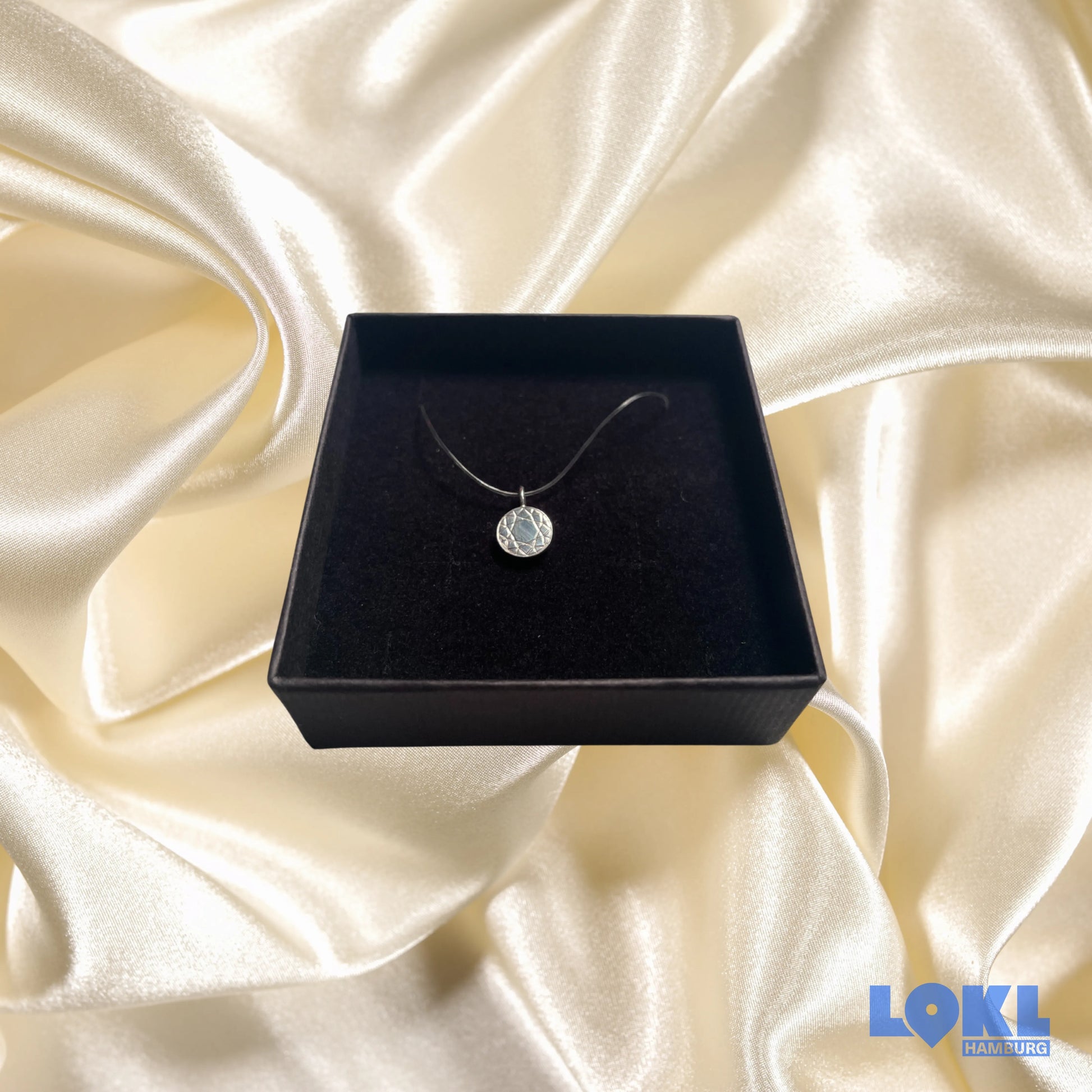 Entdecke den Charme des Anhängers „Brillant Print“ von Anne Zimmer - ein kunstvoll gestaltetes Schmuckstück aus 925er Sterlingsilber. Die 8 mm große Scheibe mit einem knapp 2 mm hohen Rand zeigt auf der Vorderseite eine faszinierende „Brillant“-Gravur. Diese kunstvolle Gravur zeichnet die Facettenkanten eines Brillanten nach und verleiht dem Anhänger eine zeitlose Eleganz.