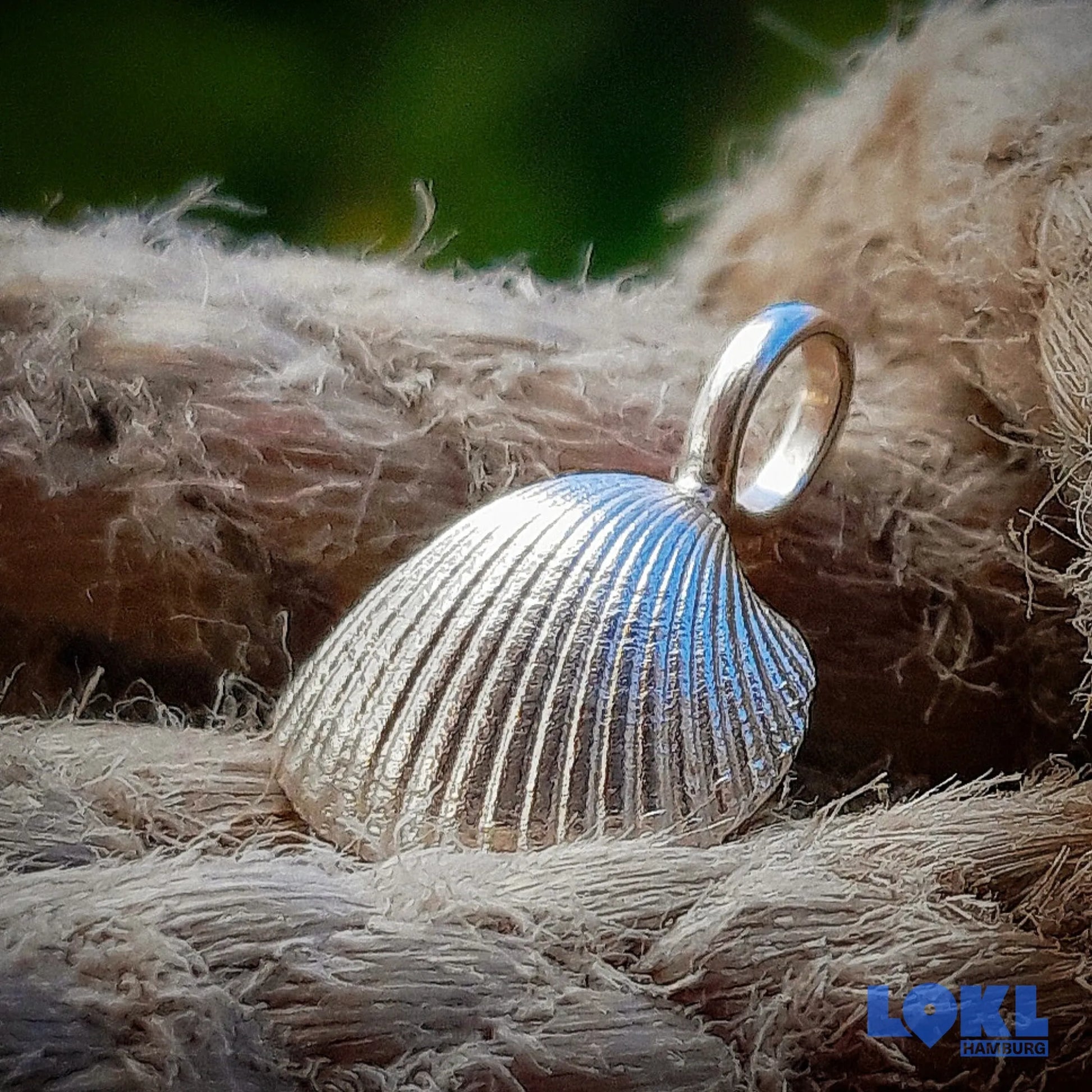 Entdecke die zarte Schönheit des Meeres und die Liebe zum Detail mit diesem handgefertigten Sterling Silber Herzmuschel-Anhänger.