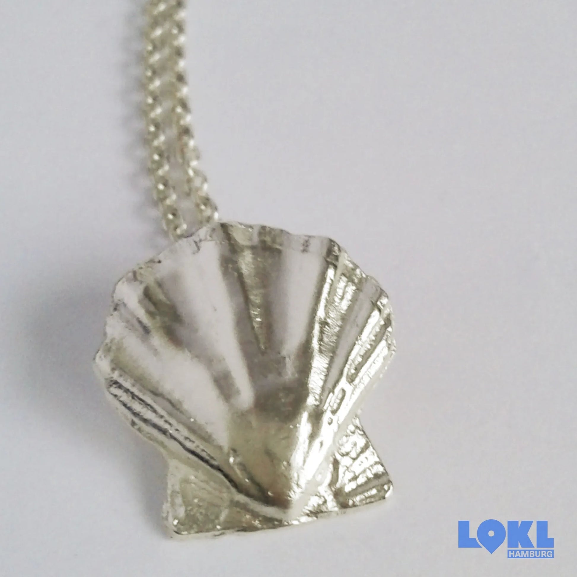 Der Schellmuschel-Anhänger ist in Form einer stilisierten Muschel gestaltet, die an die Schönheit und Anziehungskraft des Meeres erinnert. Die sorgfältige Detailarbeit und die geschmeidige Linienführung verleiht diesen Anhänger eine zeitlose Eleganz.