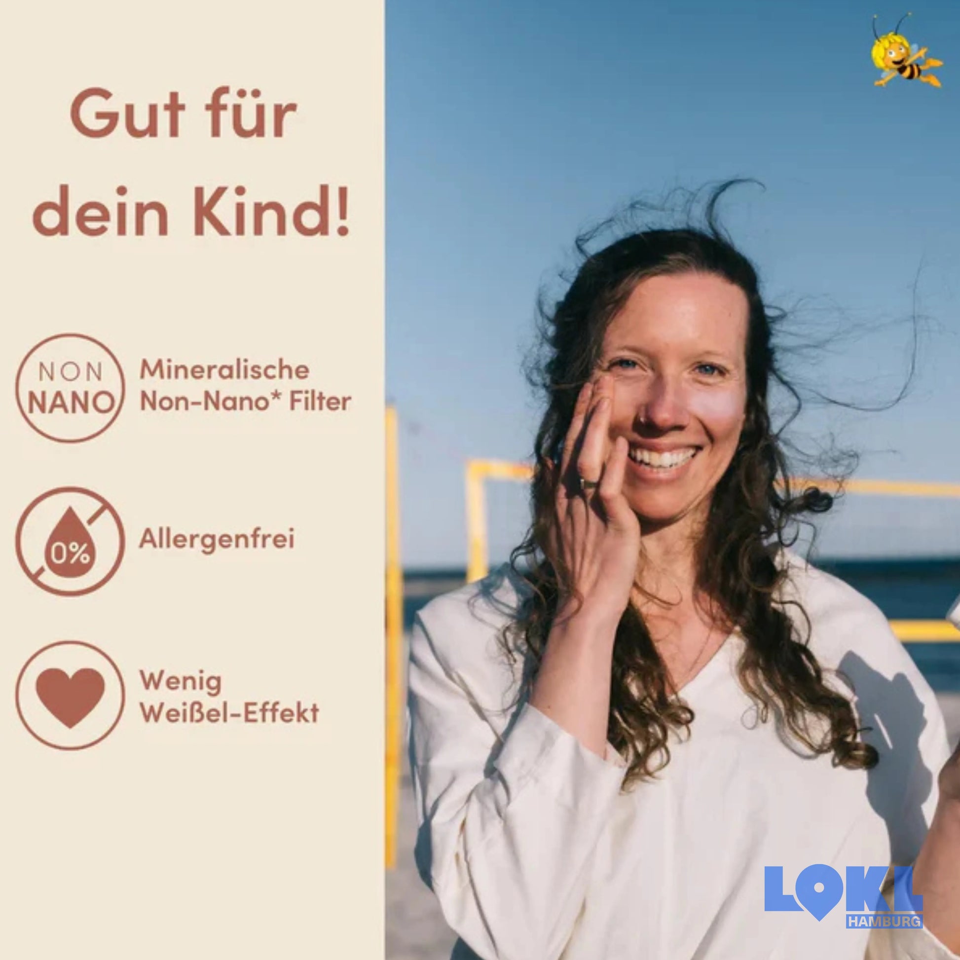 NASEWEISS - Feste Sonnencreme mit Lichtschutzfaktor (LSF) 50 in Kooperation mit Die Biene Maja ist die perfekte Wahl für alle Eltern, die ihre Kinder vor den schädlichen Auswirkungen der UV-Strahlung schützen möchten. Sie bietet zuverlässigen Schutz vor Sonnenbrand und Hautschäden. Das Besondere ist, dass jedes verkaufte Produkt dazu beiträgt, einen Quadratmeter Blühwiese für Die Biene Maja und ihre Freunde anzulegen. Damit leistet ihr nicht nur einen Beitrag zum Schutz eurer Kinder, sondern auch zur Erhaltung der Natur und des Ökosystems rund um Bienen und andere Insekten.