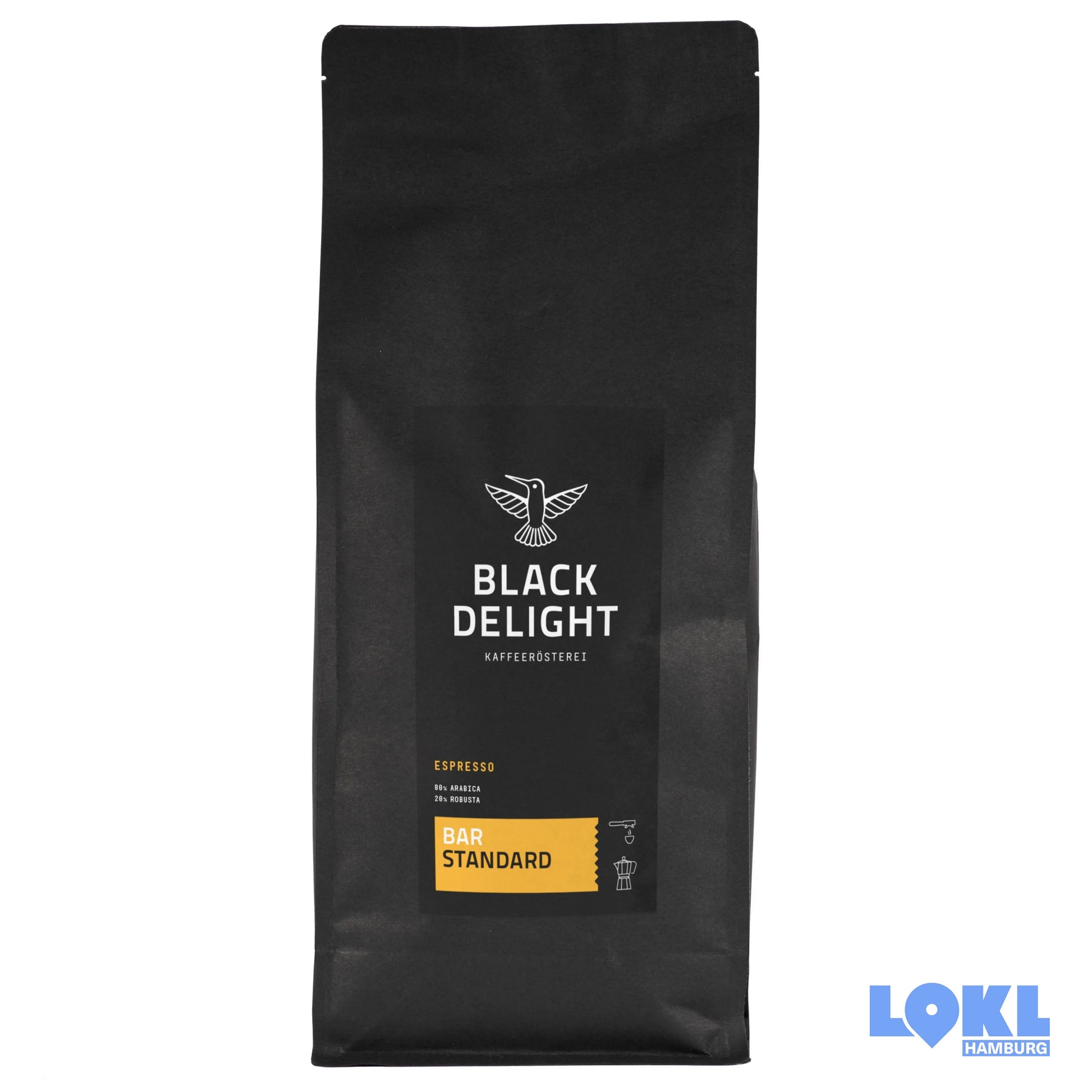 Der Bar Standard ist eine mittelkräftige Espressomischung aus fruchtigen Arabica- und schokoladigen Robustabohnen. Black Delight röstet ihn in feinem, norditalienischem Stil. Angenehm mild, leicht fruchtig, mit sattem Körper und ganz viel Crema.