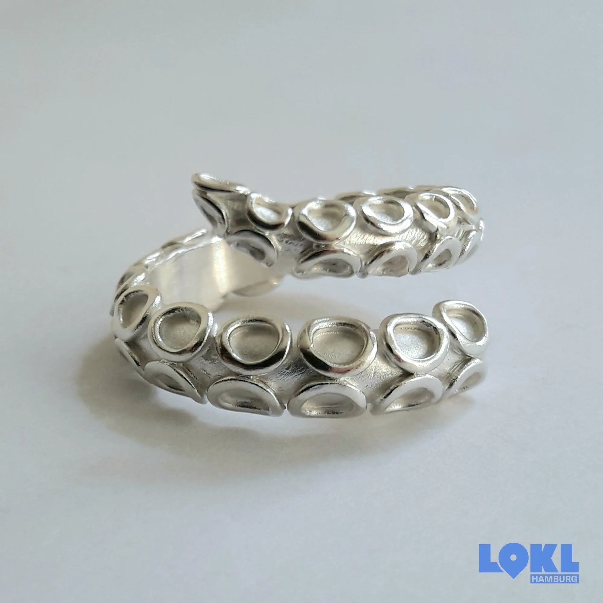 Hergestellt aus hochwertigem 925er Sterlingsilber, zeigt dieser Ring die erstaunliche Detailarbeit der Diplom-Designerin Sabine Lang, die die Anziehungskraft eines Oktopus' in Form eines Rings einfängt.