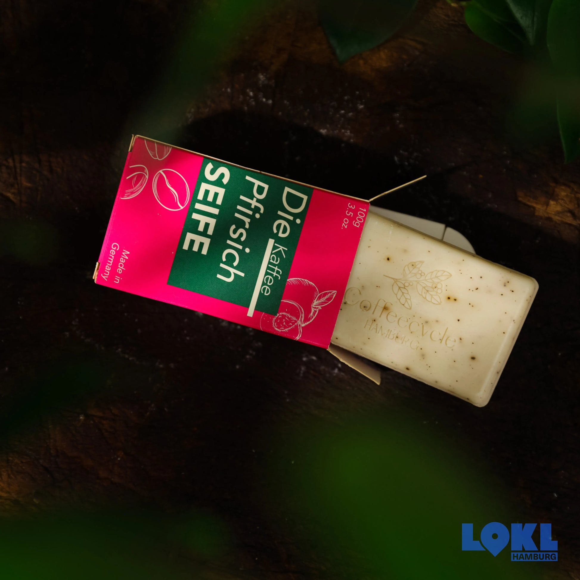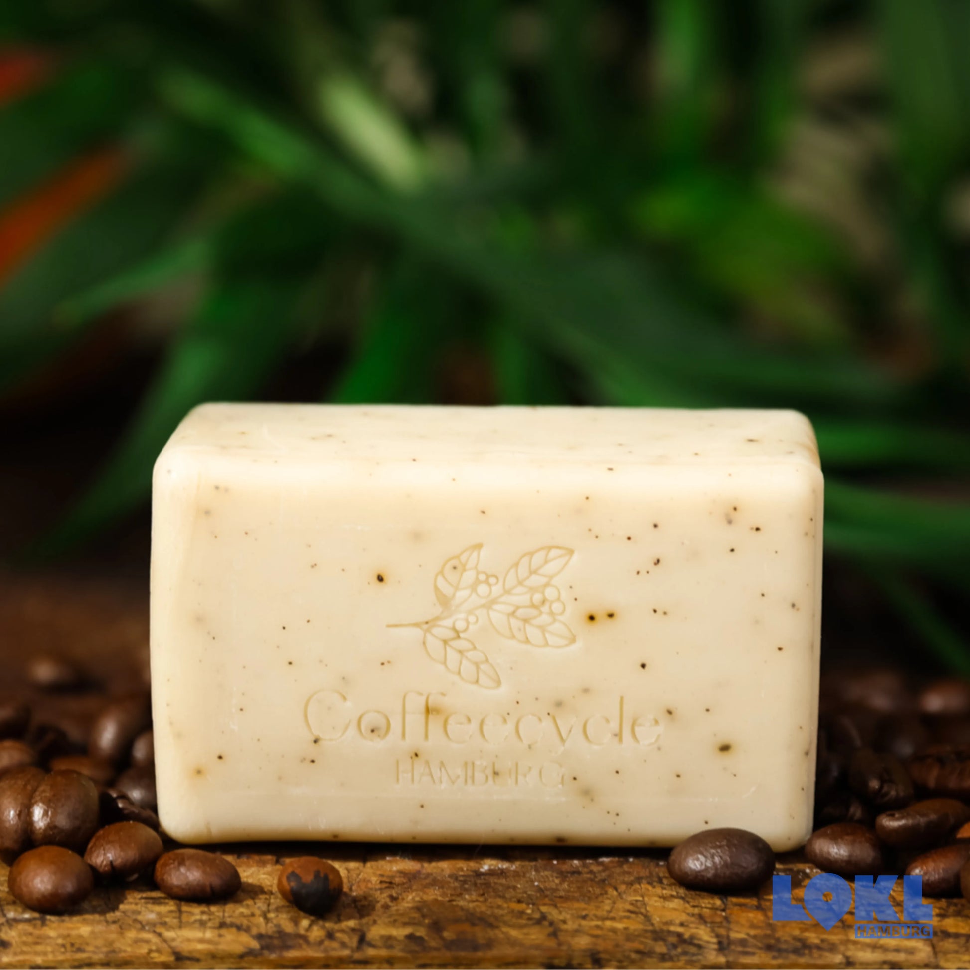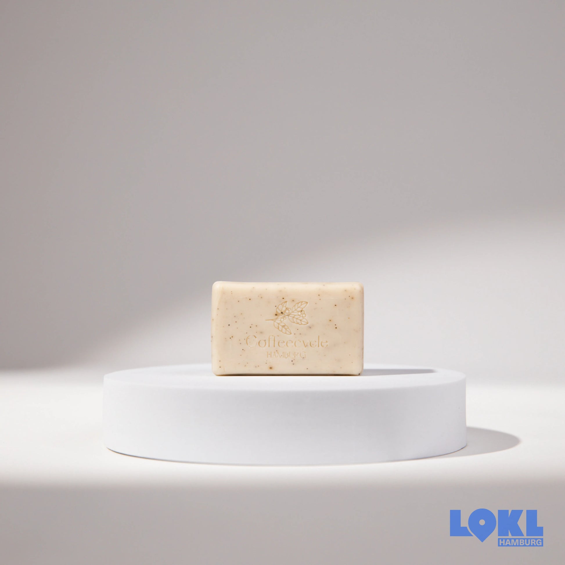 Die Kaffeeseife von Coffeecycle besteht aus hochwertigen Ölen, die kalt verarbeitet werden. So bleiben alle wertvollen Inhaltsstoffe erhalten und die Hände werden optimal gepflegt. Der in der Seife enthaltene Kaffeesatz reinigt die Haut von abgestorbenen Hautzellen und anderen Verschmutzungen. Das im Kaffee enthaltene Koffein sorgt zusätzlich für eine glatte und gut durchblutete Haut. Der Kaffeesatz stammt aus verschiedenen Hamburger Cafés.