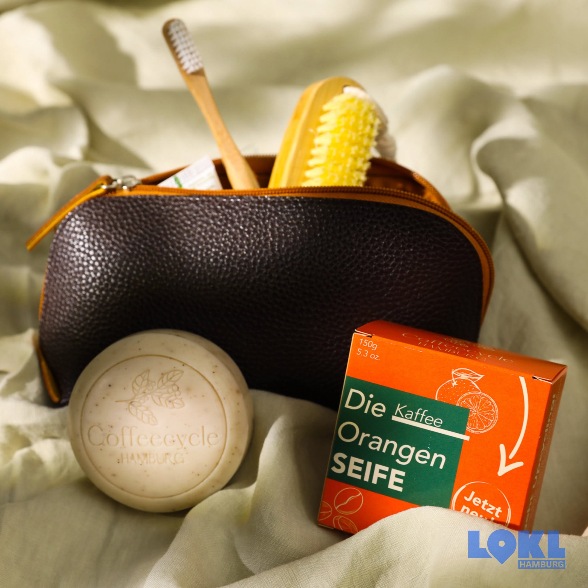 Die Kaffeeseife von Coffeecycle besteht aus hochwertigen Ölen, die kalt verarbeitet werden. So bleiben alle wertvollen Inhaltsstoffe erhalten und die Hände werden optimal gepflegt. Der in der Seife enthaltene Kaffeesatz reinigt die Haut von abgestorbenen Hautzellen und anderen Verschmutzungen. Das im Kaffee enthaltene Koffein sorgt zusätzlich für eine glatte und gut durchblutete Haut. Der Kaffeesatz stammt aus verschiedenen Hamburger Cafés.
