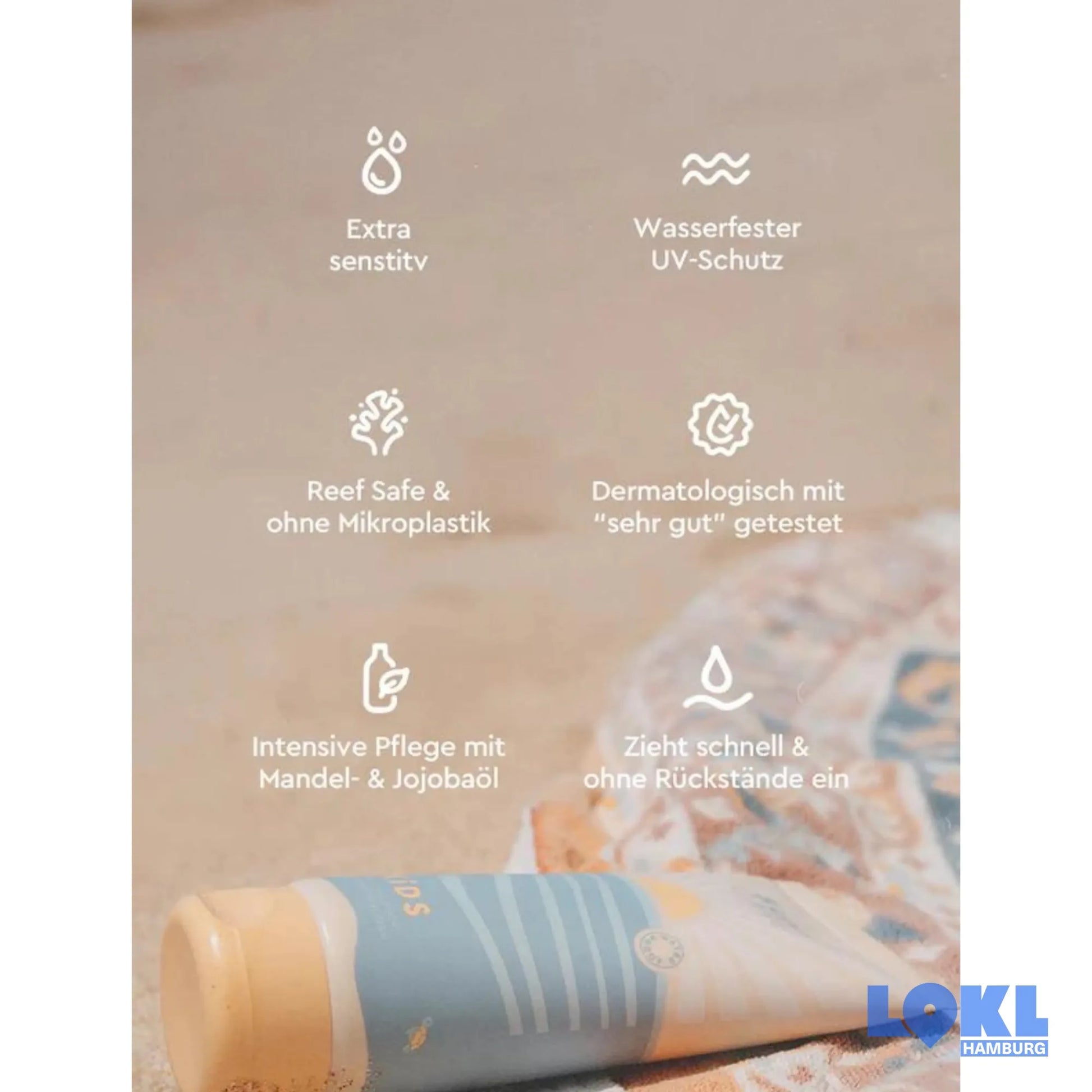 Die Kindersonnenlotion mit LSF 50+ bietet sehr hohen Schutz für empfindliche Kinderhaut. Die leichte Formel zieht schnell ein, schützt vor Sonnenbrand und langfristigen Schäden durch UVA- und UVB-Strahlen. Dermatologisch für empfindliche und sensible Haut getestet und die Bestnote „sehr gut" erhalten. Frei von schädlichen Inhaltsstoffen und Duftstoffen kann der Strandtag kommen. Eincremen Feritg und los :)